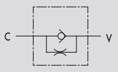 Подсоедините V к порту давления и C к к контролируемому порту. Поток ограничивается от C до V и свободен в обратном направлении.