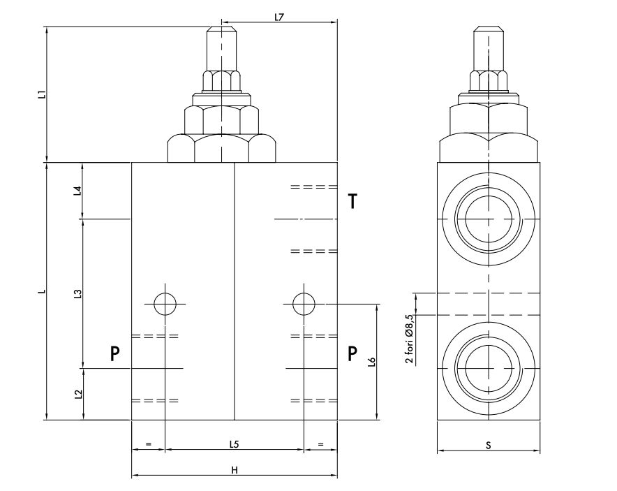 Подключение: соединить порт Р с давлением, порт Т с баком. Порт P реверсивный.