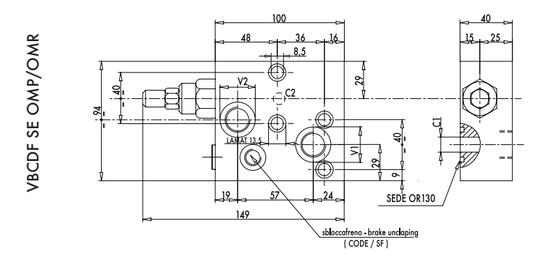 Тормозной клапан фланцевого монтажа на мотор типа OMP/OMR с разблокировкой тормоза и без тип VBCDF DE(SE) OMP/OMR