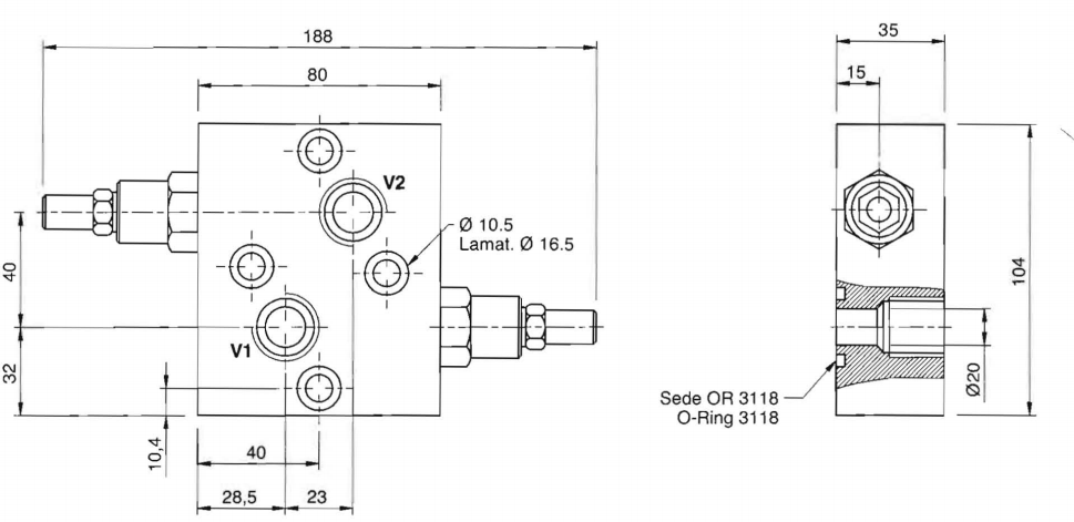 Перекрестный предохранительный клапан фланцевого монтажа на мотор типа OMТ с разблокировкой тормоза тип VAU OMT
