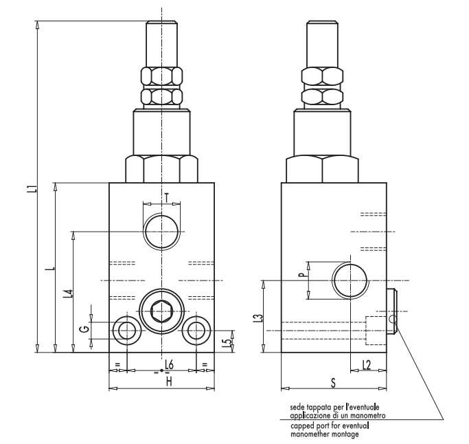 Линейный предохранительный клапан с портом для манометра VMP